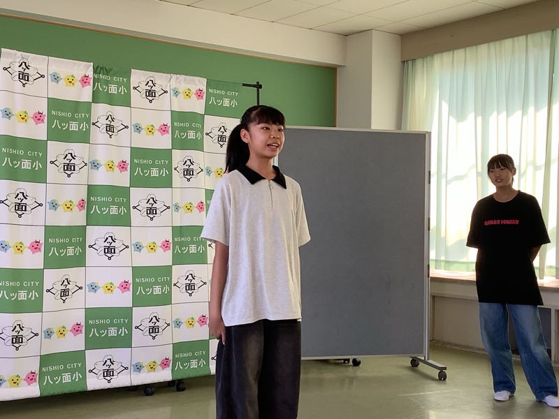 今日は、表彰と環境委員会からは生き物ふれあいタイムについてのお知らせがありました。最後に前期児童会からのメッセージがありました。