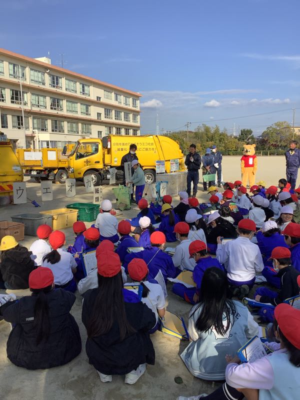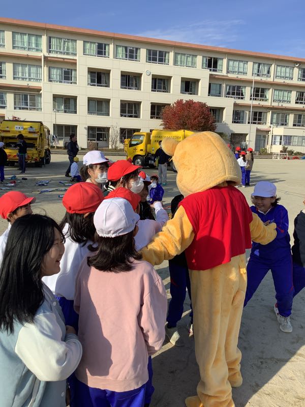 今日は出前授業の「レスキュー530」を行いました。日頃、なにげなく捨てているごみの分別についてクイズ形式で考えたり、実際にごみ収集車に触れたりしながらしっかりと学ぶことができました。「リサイクマ」というマスコットとも触れ合い、楽しく学ぶことができました。