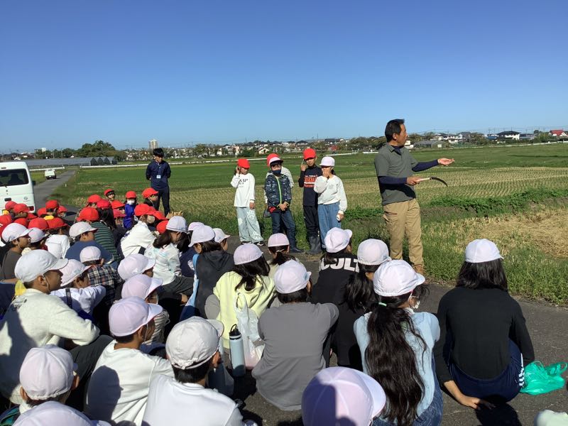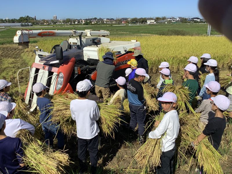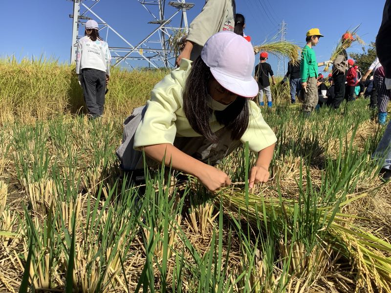 天気にも恵まれ、雲ひとつない秋晴れの下で稲刈りをしました。狩る時の稲穂の持ち方や縛り方に気をつけて、仲間と協力して時間いっぱい取り組むことができました。初めて稲刈りを経験する子も多く、お米を収穫する大変さを実感し、振り返りには、「ふだん食べているお米を作ってくださる農家の方々に感謝の気持ちをもちたい」と書く子もいました。貴重な体験をさせていただいたことに感謝の気持ちをもち、これからもお米を大切にして過ごしていきたいです。
