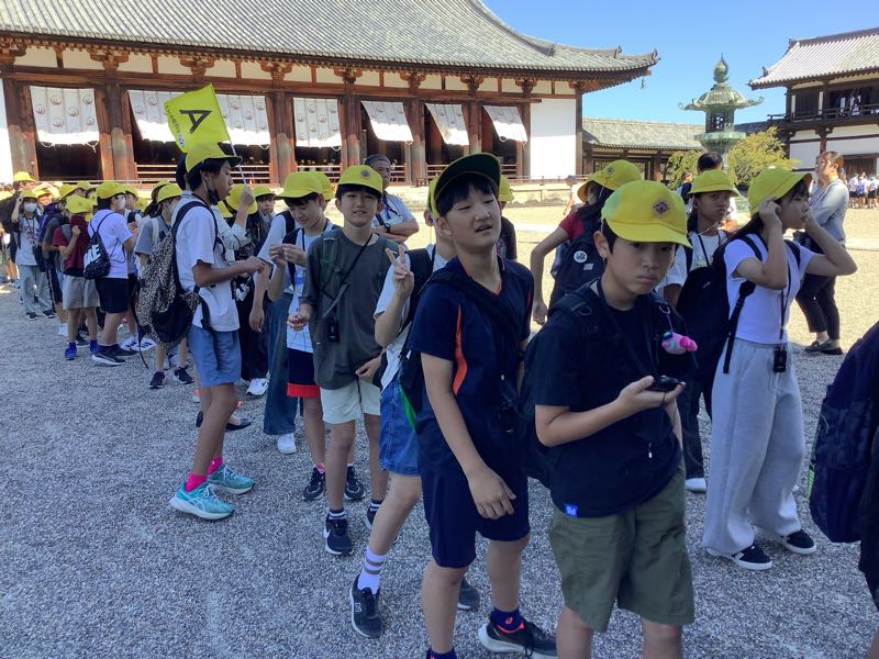 10月9日〜10日の2日間、6年生は無事に奈良・京都への修学旅行を終え、全員元気に帰校しました。ご協力いただきました保護者の皆様に心より感謝申し上げます。この旅では、係の仕事に責任感をもって取り組み最後までやりぬく強さを「学び」ました。また奈良・京都のいくつかの文化遺産を回り、教科書の知識を超えた本物の迫力に触れ、歴史学習を「深め」ました。そして、時間と公共の場でルールを守ることで自分も相手も「楽しむ」ことができました。この修学旅行で得た宝物を胸に、残りの小学校生活へ進んでまいります。今後とも温かいご支援をよろしくお願いいたします。