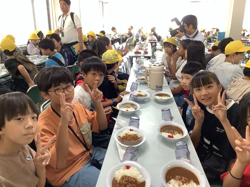 松本屋でいただきました。今日のメニューは、カレーライスです🍛食事係に続いて元気に「いただきます」をし、友だちと談笑しながらもりもり食べました。食べ終わった子は、とても満足な笑顔で、お腹も心も満たされました!