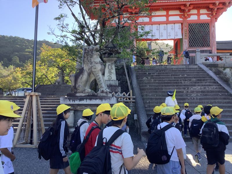 清水寺でたくさん歩き、少し疲れが見えてきている子もいますが、二条城へ到着しました🏯ここでは長い歴史の中でどんなことがあったのか、わくわくしながら全員で見学をしました。子どもたちが特に興味を示していたのが「鶯張り」。「本当にキュッキュッと鳴るんだ!」と驚きました。豪華な大広間や壁や天井の絵を見て、徳川家の権力の大きさを感じました。