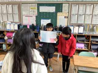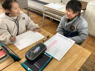1組は、3年生の総合学習の発表を聞いて、福祉について興味をもちました。