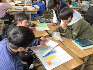 きらら学習で防災についてタブレットで調べたり、アンケートを作成し集計したりしました。調べたことやアンケートからわかったことをまとめ、クラスで発表する準備をしています。