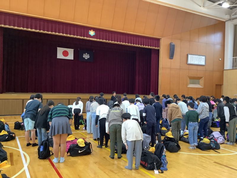 あいにくの雨の中ですが、山びこの丘へ元気に出発しました。
