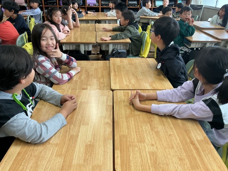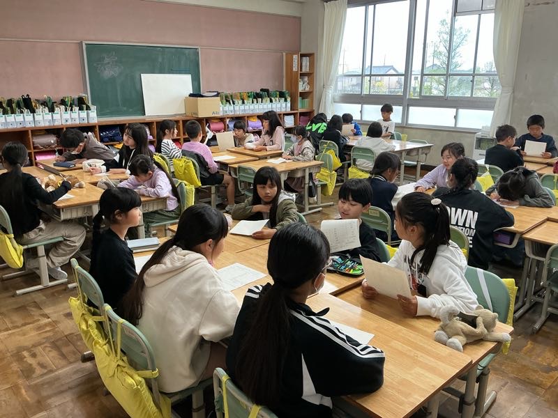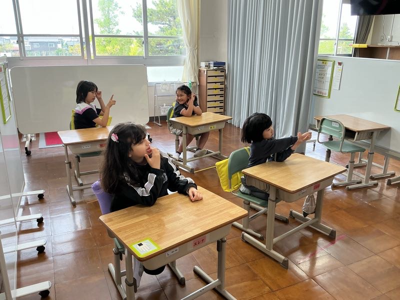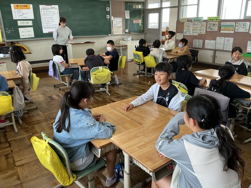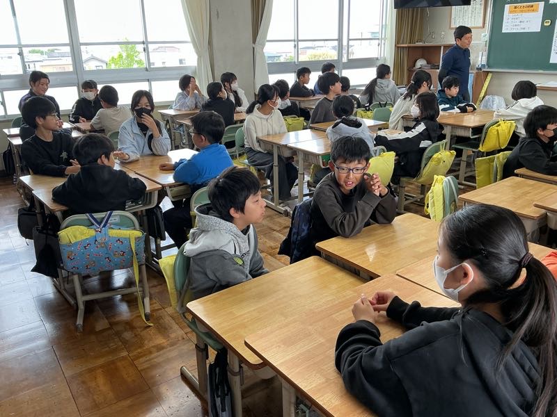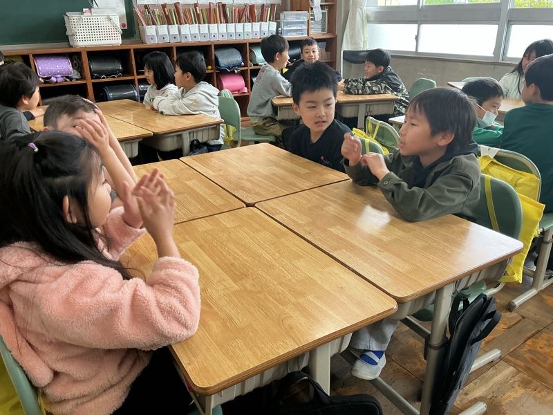 朝の学習で、よしよしタイム(アドジャン)を行いました。同じグループの友達とお題に沿った話で盛り上がりました。