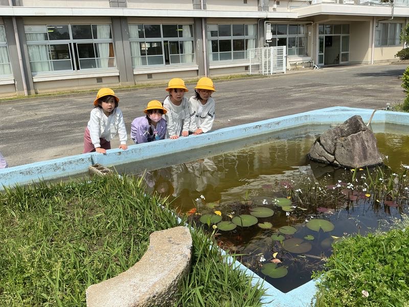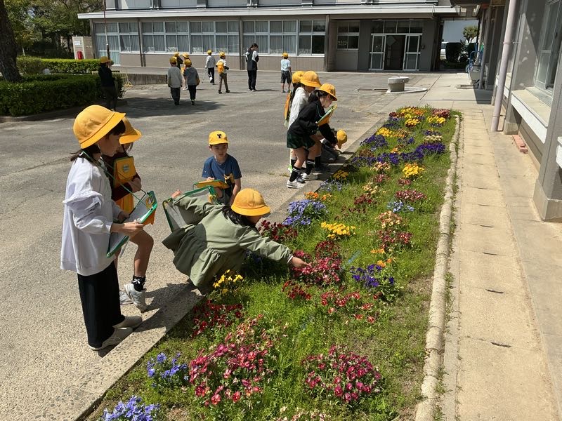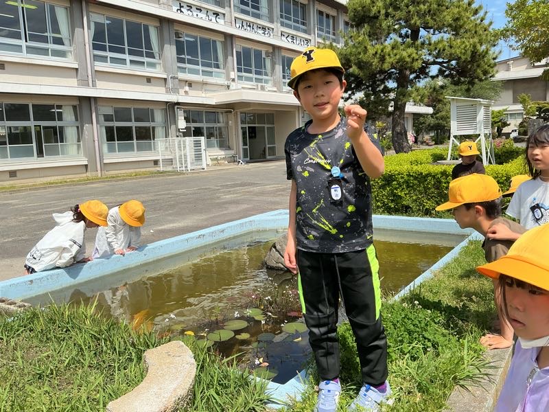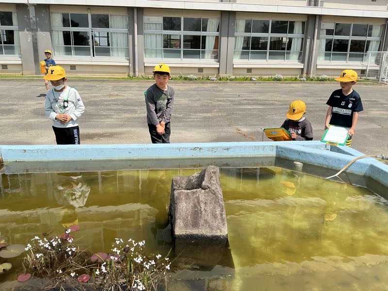 3年生は理科の学習で春見つけをしました。メダカ池のアメンボやシロツメクサ、、、たくさん見つけました。