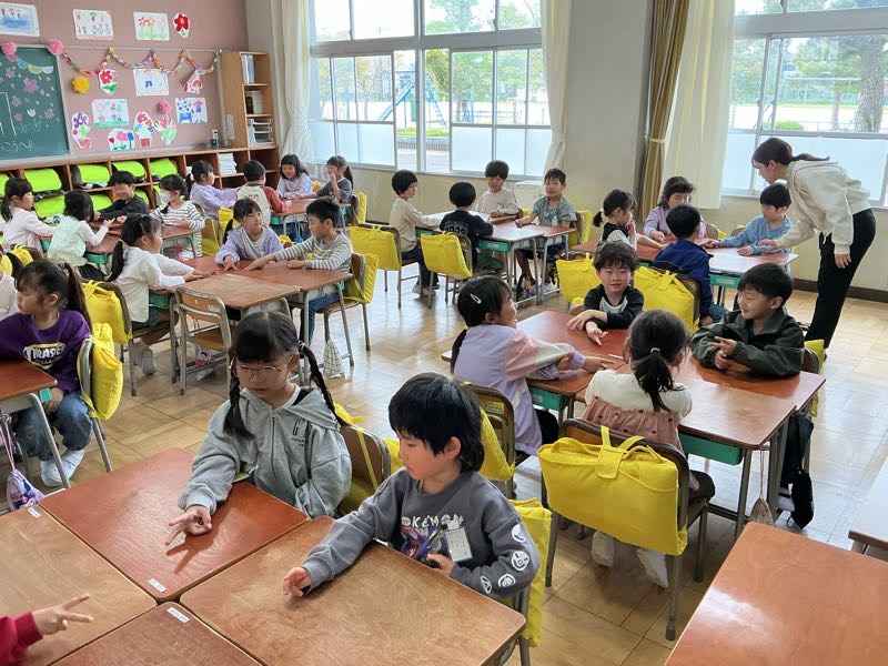 今日から小学校での授業が始まりました。1年生にとって初めての授業です。今日は学校での過ごし方の勉強をしました。お道具箱の整頓やトイレの使い方など、一つ一つ確認しながら行いました。