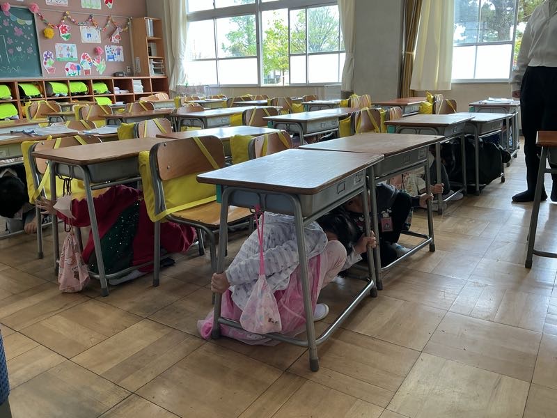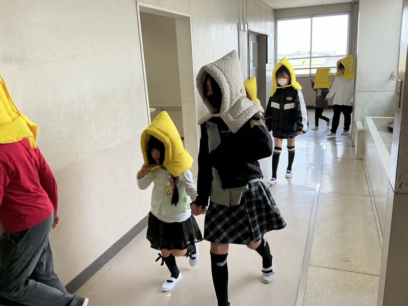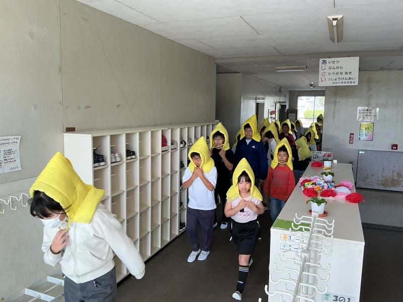 垂直避難訓練を行いました。本来は地震が起きた後、津波警報が出た場合、横須賀の春日神社への避難ですが、津波の到着時刻から垂直避難に切り替えることを想定した訓練を行いました。多くの児童が身を守る行動を素早く行うことができました。