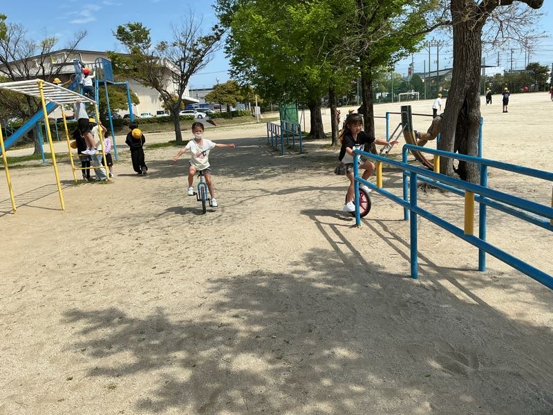 2年生の子たちは一輪車を乗りこなしています。