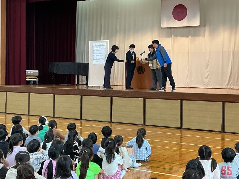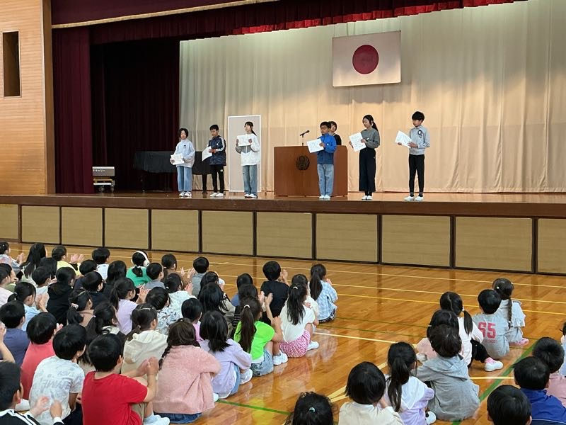 この後の校長先生のお話では、吉田小の子たちのよい姿の話と、自分の周りの子のことを知ろうというお話でした。