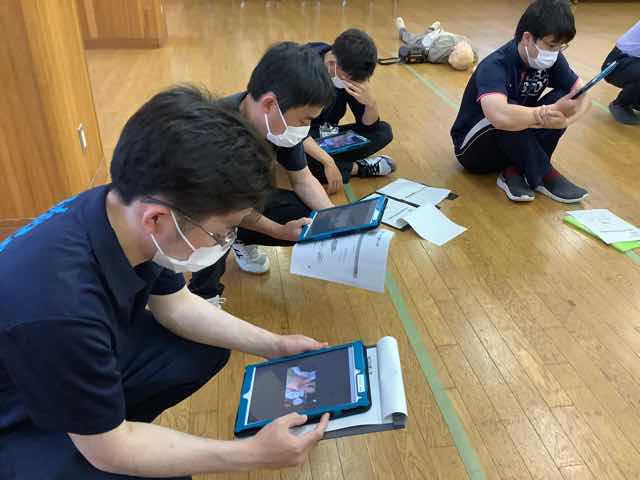 今朝の全校朝会は、6年1組からの生中継で放送しました。校長先生が6年1組の教室へ行き、アプリを使って、iPadで撮影している映像を各教室に流しました。1年生の教室では、教室の様子や6年生の子の映像が流れると「わあ〜」と歓声があがりました。