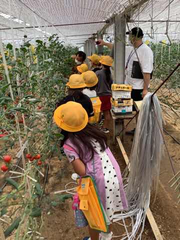 天野農園さんのハウスに見学に行きました。ブランド「赤美味(あかうま)」づくりの工夫をいろいろ教えていただきました。赤美味は美味しい美味しいミニトマトです。今シーズンは間もなく終了とのこと。次は10月の下旬頃、新しい樹から新しい実ができるらしいです。