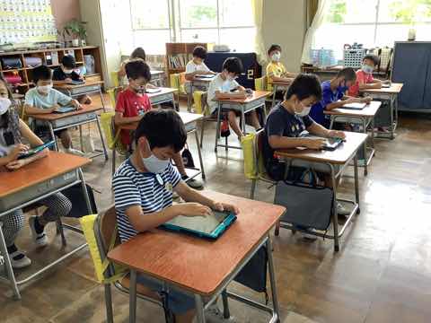 今朝のあるクラスの風景です。タブレットを使って漢字の学習をしていました。 小学生の漢字学習ソフト「漢字忍者」を活用しています。新しい漢字が覚えられたかな。