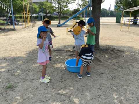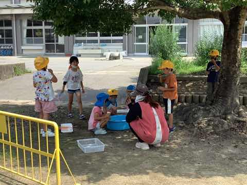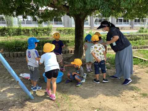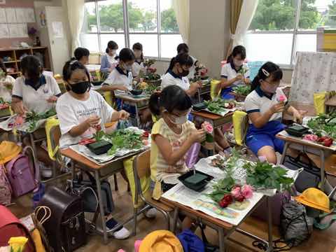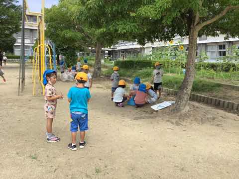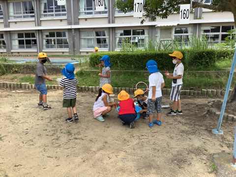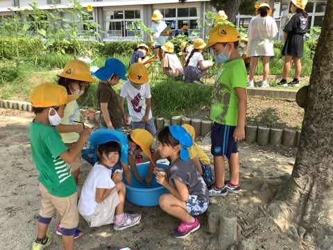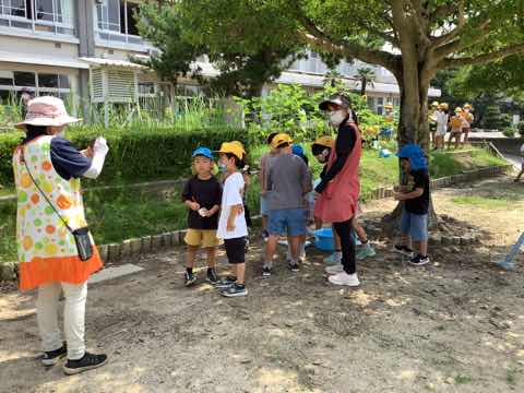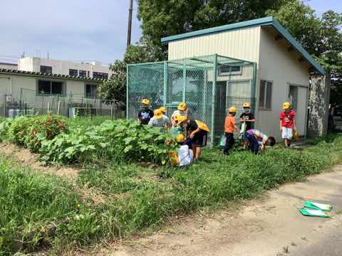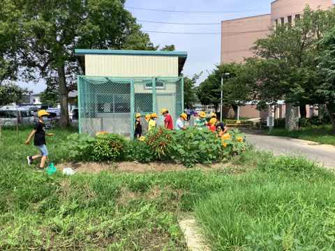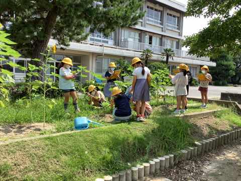 夏休みを前に春にたねを植えた、ヒマワリや野菜(オクラ、ダイズなど)の成長を観察して、草に栄養をとられないように、草取りをしていました。今ごろから秋にかけての実りが楽しみです。「植物の命」を感じることもできました。