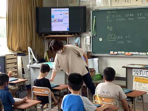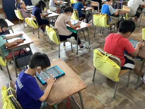 午後からの授業。家でも使えるようにログインの方法を確認したり、実際にタブレットを使った授業をしていました。 一気に使いこなせるところまではいきませんが、少しずつ慣れて使えるようになってくれたら良いです。