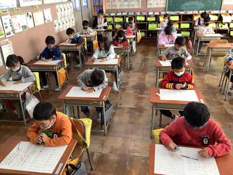 今日はがんばりテストの日。1時間目の脳がスッキリしている時間帯に1〜3年生までががんばりテストを実施していました。上学年は、吉Show発表会の練習や英語の授業をしています。 上学年は2時間目以降にがんばりテストを行います。昨日は祝日でノーゲームデーではなかったですが、勉強できたかな。多分みんな頑張って勉強しましたね。