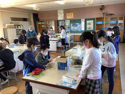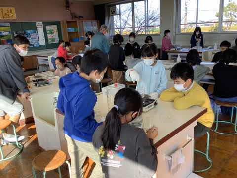 5年生2クラス。ミョウバンを水に溶かす実験、初めての濾過を行いました。 コロナウィルス感染に気をつけながらですが、実験を行うことができ、ちょっぴり楽しい気持ちで授業を受けることができました。