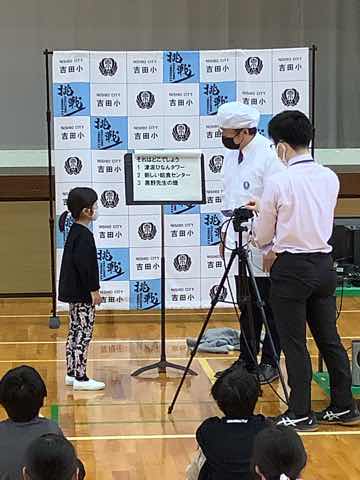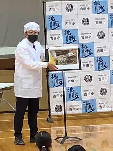 表彰と校長先生のお話しがありました。今回の校長先生のお話しは、新しい給食センターを校長先生が見学に行かれた時、取材されたことをクイズにしたものでした。新しい施設の様子が写真があったのでよくわかりました。 今日もセンターで働く60名の方の手によって美味しい給食が作られています。
