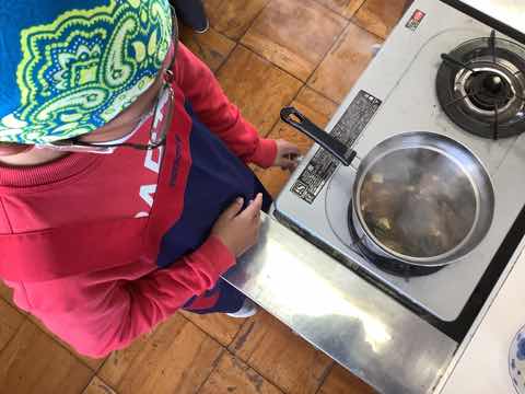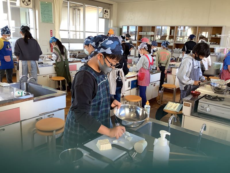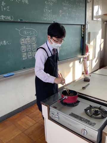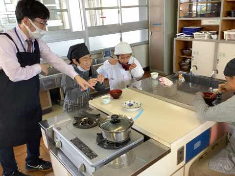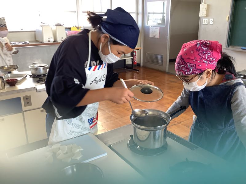 緊急事態宣言が開けて、ようやく調理実習を行うことができるようになりました。出汁を入れないものと出汁入りのものの味を比べる学習をしました。調理実習が感染に気をつけながらもできる、そんな日常が嬉しいです。