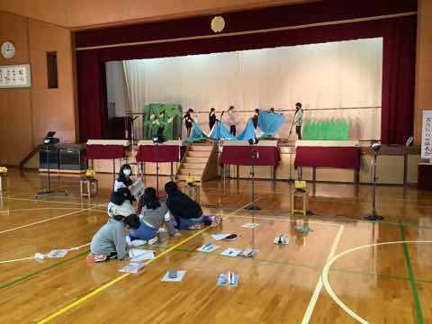 6限。6年生が各係(スポット、大道具、放送等)に分かれて、仕事の事前確認をしました。土曜日の本番に向けて、上手に活動できるように、一つ一つきっちり確認することができました。
