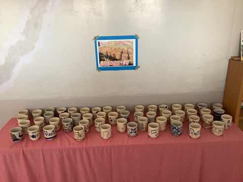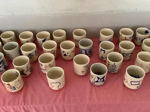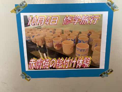 6年生が修学旅行の時に絵付けをした赤膚焼(奈良市五条山一帯の丘陵で作られてきた焼物)が先日焼き上がって送られてきました。 現在は3階の家庭室前に展示してあります(上の写真)。2学期の終わりには持ち帰ってもらうことになると思います。自宅で使ってもらえるといいです。