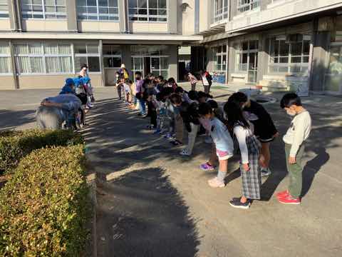 午後、職員室の外からの入口に新聞紙が広げてありました。何かしらと思っていましたら…。