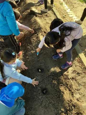 さざなみホールで楽しい時間を過ごしました。チューリップは来春の入学の頃、きれいな花を咲かせてくれているといいですね。