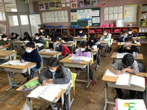 雨が降り、特別な行事もない3連休の前日。今日は中学年の授業をのぞいてみました。