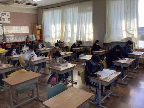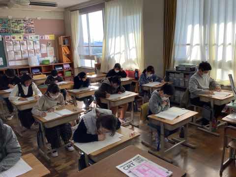 高学年の5、6年生を取材しましたが、今までのこのようなテストを受けた経験が数回あるので慣れもあり、落ち着いて解答しようと頑張っていました。