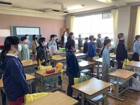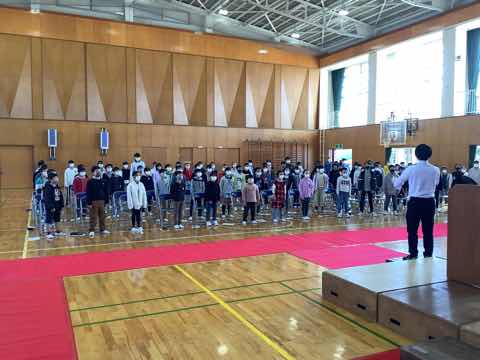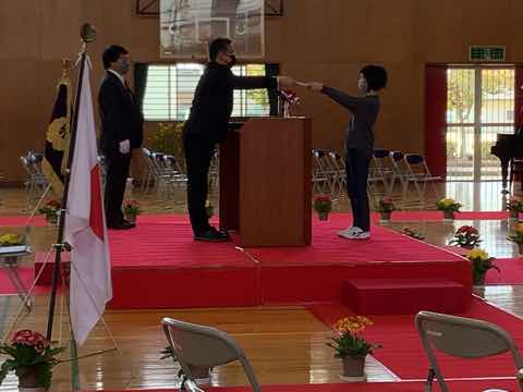 続いて、精勤賞の表彰と来年度前期の児童会役員の任命が行われました。