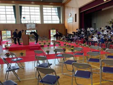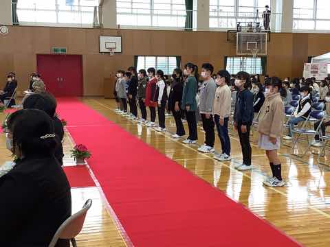 今日は式の開始前からあいにくの雨でしたが、吉田小学校では晴れやか心で6年生55名が巣立っていきました。