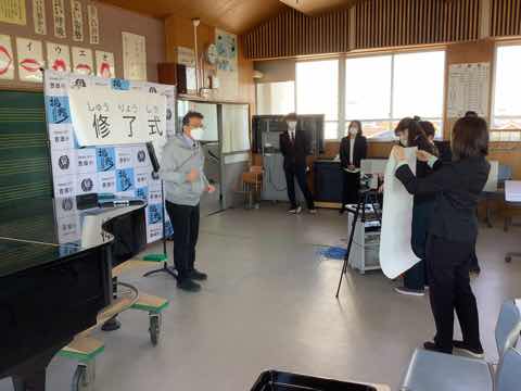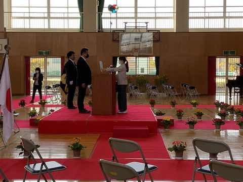 卒業式まであと1日。1時間目は卒業記念品授与式並びに修了証授与式が体育館で行われました。5年生以下の学年は配信にて参加しました。