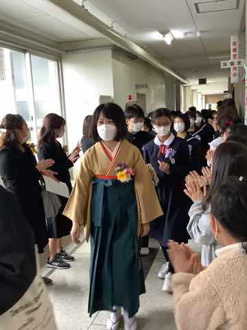 校長先生からの最後のお話があり、校歌を久しぶりに歌って式を終えました。