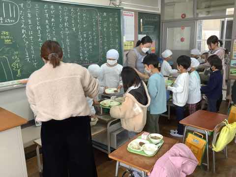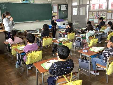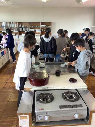 1組は算数で5年生のまとめを、2組は家庭科でお茶を楽しむ会を行っていました。