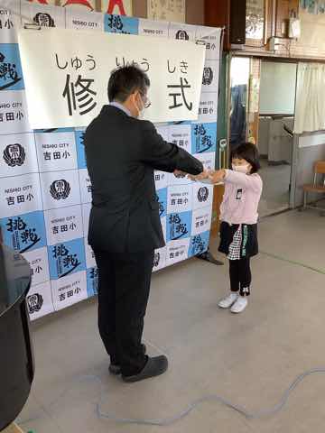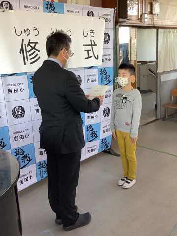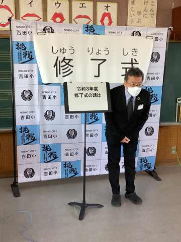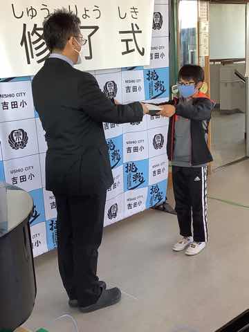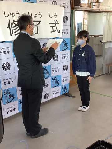 卒業式、素敵に立派にできました。中学校でも吉田っ子の誇りをもって頑張れ。