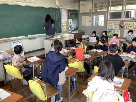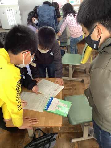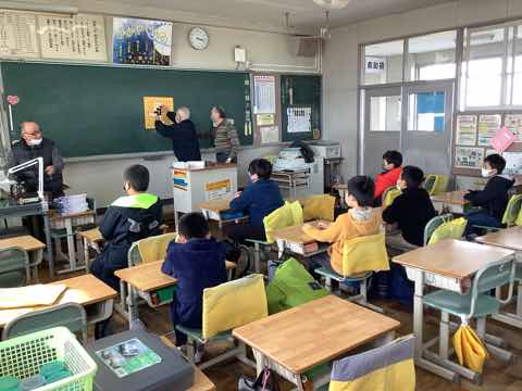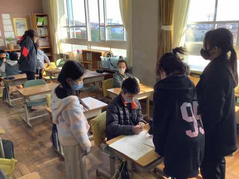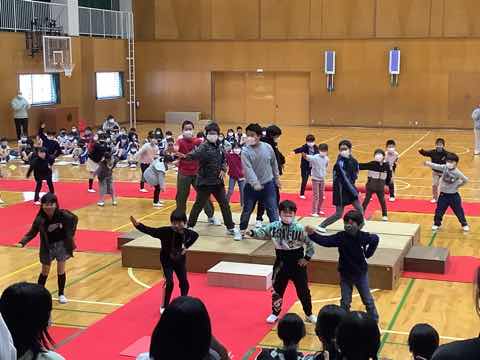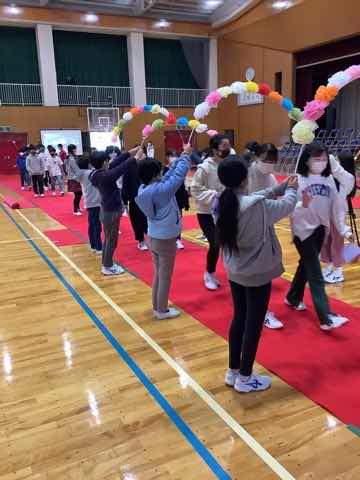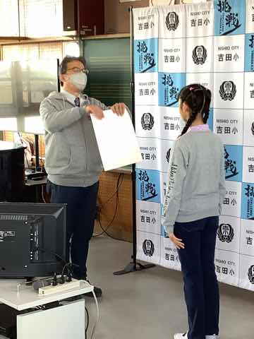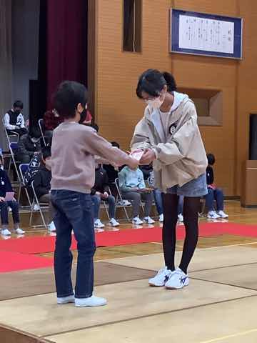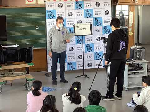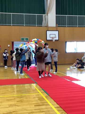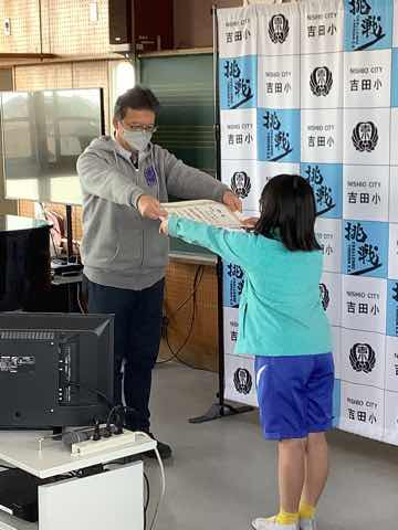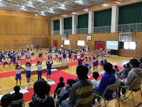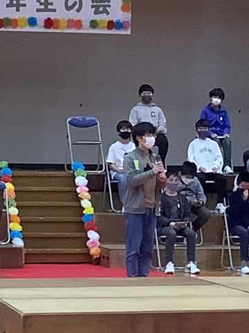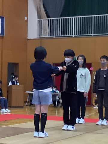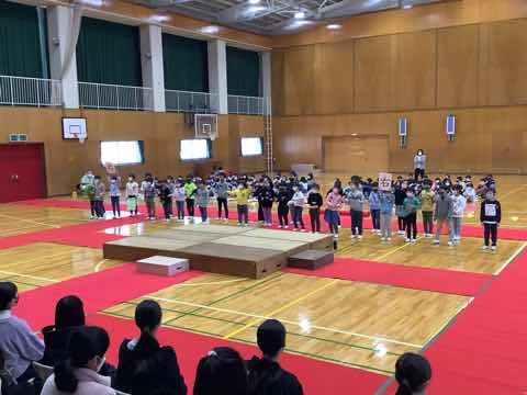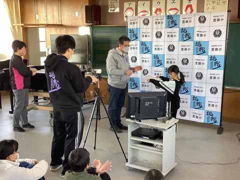 1年生→3年生→2年生→4年生→5年生の順に出し物を発表し、全校クイズをしました。次に在校生からのプレゼント、6年生からのお礼の言葉があり、吉田小学校の伝統の引き継ぎ式がありました。