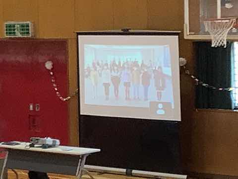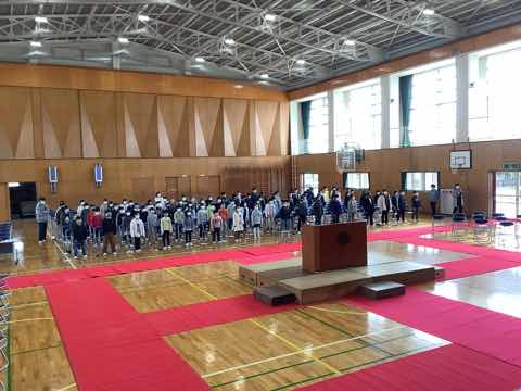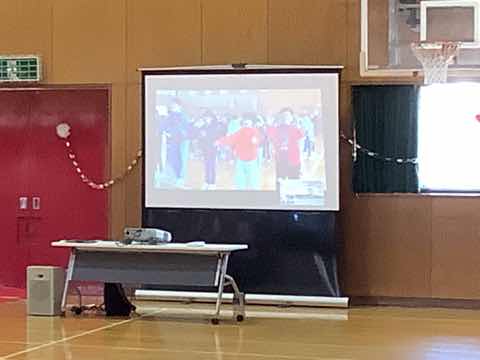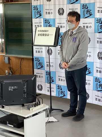 表彰、校長先生の話と贈り物の歌がありました。吉田小学校愛に溢れたよい朝会になりました。