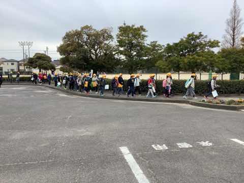 15時25分。たくさん歩いたので「脚が棒のようだ」という子もちらほらいましたが、大きな怪我もなくら無事に帰ってきました。お疲れ様。