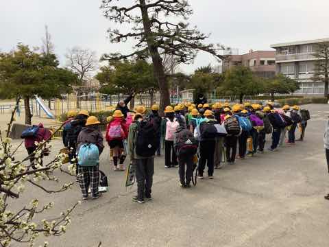 6年生卒業及び新1年生お迎えの準備として、通学団会がありました。