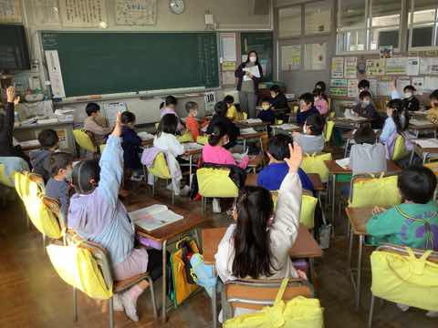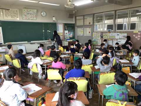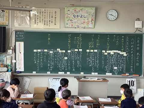 1時間目。一年生の国語「スイミー最終場面」