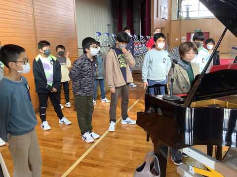 2時間目は6年生、3時間目は4、5年生の式歌練習がありました。