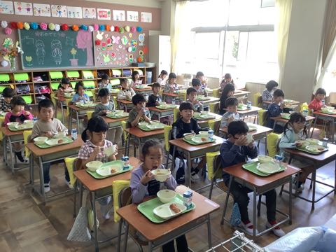 みんなが待ちに待った給食が始まりました。