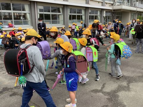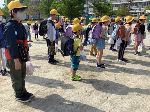 今日は特別日課だったので一斉下校で帰りました。運動場の状態が悪かったので、アスファルトの場所で集合しました。
