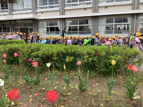きれいに咲いたチューリップにもさようなら。また来週、みんなの登校を待ってます。