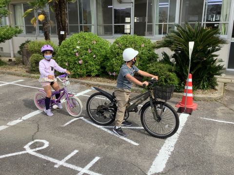 指導員さんから、自転車は速く乗ることより安全に乗ることが1番大事というお話をしていただきました。今日勉強したことを守り、交通安全に気をつけていきましょう。