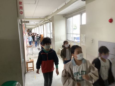 不審者が校舎内に侵入した! という場合を想定して、避難訓練をしました。