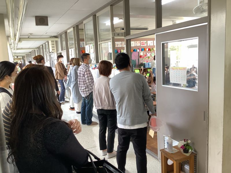 保護者の皆さんには、健康チェックと手指の消毒をしていただき、校舎内に入っていただきました。