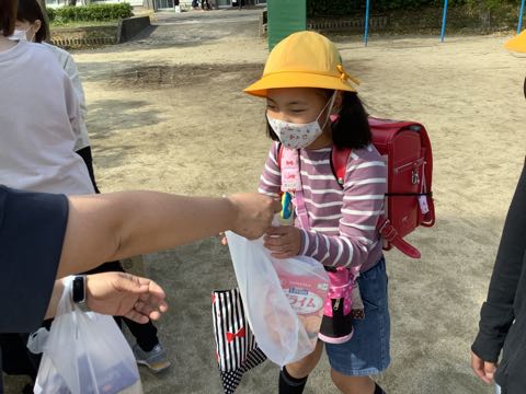 2年生から6年生までの児童は、防災備蓄品として昨年度備蓄していたクラッカーを持ち帰りました。