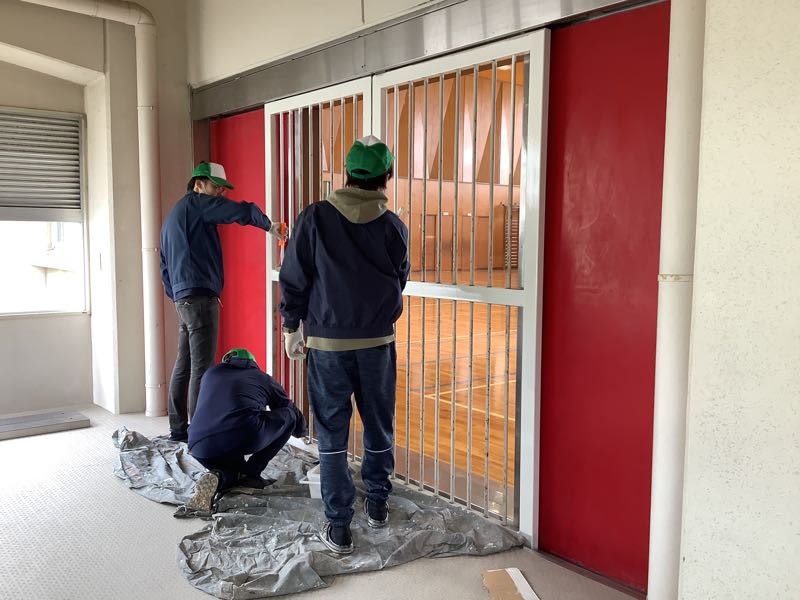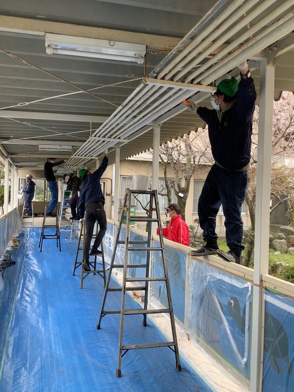 アイシン高丘労働組合の皆さんが、社会貢献活動として、吉田小学校の施設のペンキ塗りをしてくださいました。さびついていた体育館への通路の天井は、見違えるほど明るくなり、靴箱も新品のようにぴかぴかしています。アイシン高丘労働組合の皆さん、本当にありがとうございました。これでまた一つ、新学期に吉田っ子を迎える準備が整いました。他にも休み中に変わったところがあります。吉田っ子の皆さん、登校を楽しみにしていてください。